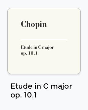 Available for the following list of works (November 2024): I. Albéniz: La Vega, J. Haydn: Piano Concertos D major and F major as well as the Cello Concerto C major, F. Liszt: Hungarian Rhapsody Nr. 2, W. A. Mozart: Clarinet Concerto and Violin Concertos No. 1 and 5, F. Schubert/F. Liszt: Ständchen, R. Schumann: Fantasy op. 17, S. Rachmaninoff: Piano Concerto No. 3, G. B. Viotti: Violin Concerto Nr. 22.