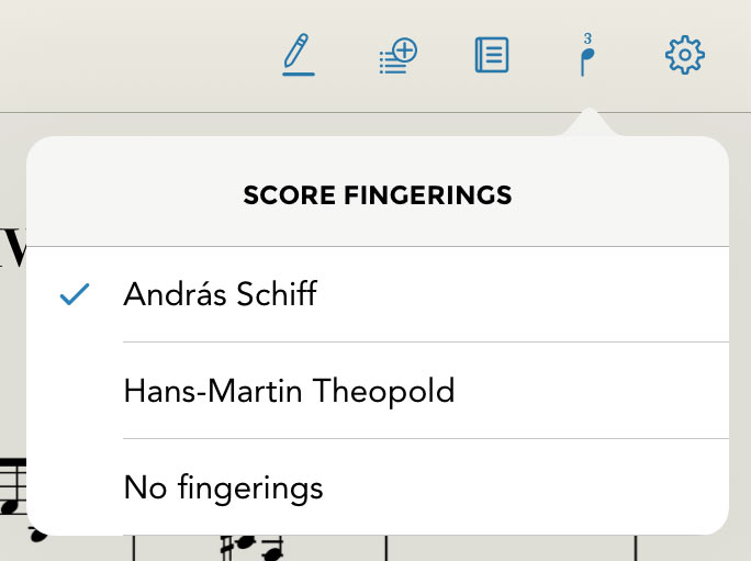 Only the Henle-Library App gives you a choice between various fingerings for countless pieces of music. The alternative fingerings are, in accordance with your selection, immediately superimposed over the (otherwise unchanged) original score. Of course you can also delete, move, change or supplement all of the displayed fingerings. And if you wish to rely on your own notations, existing fingerings and bowstroke notations can simply be hidden.